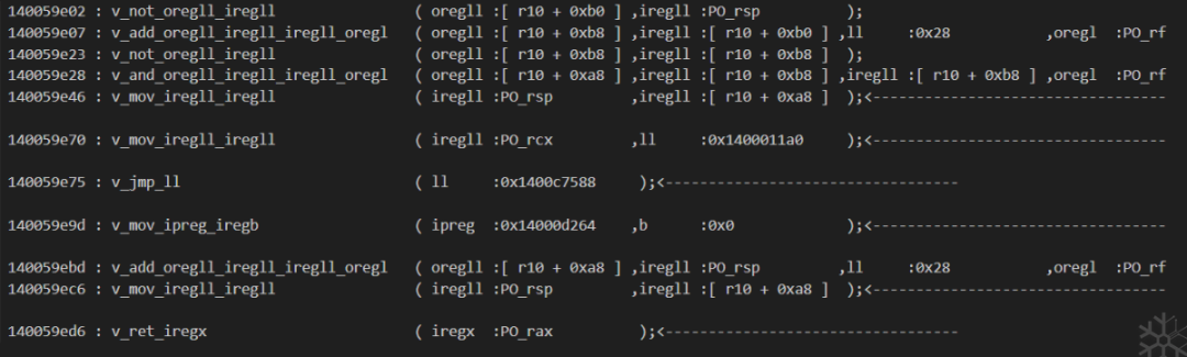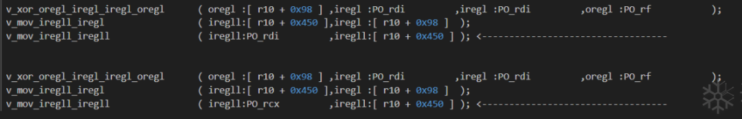 mov reg,qword ptr[xxx],mov reg,qword ptr[rip + yyy],详情参考代码:idapython/deTvm.py . Asm.AsmToHex()五