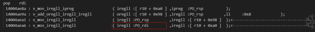 14004a4c8 : 将 [r10 + 0xb8] 标记为 [not,PO_rsp,False],[add,0x80,True] //会拷贝前一个的标记