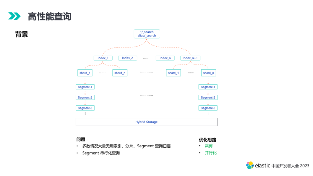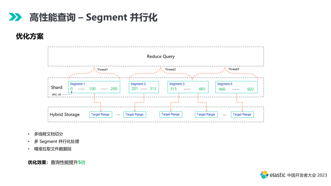 ES 底层分片之间是可以并行化的,但是单个分片内部多个 segment 之间是串行化的。混合存储引擎的底层是对象存储,多个 segment 串行化导致 IO 排队严重,查询效率低下,尤其是在大查询拉取数据较多的场景下。