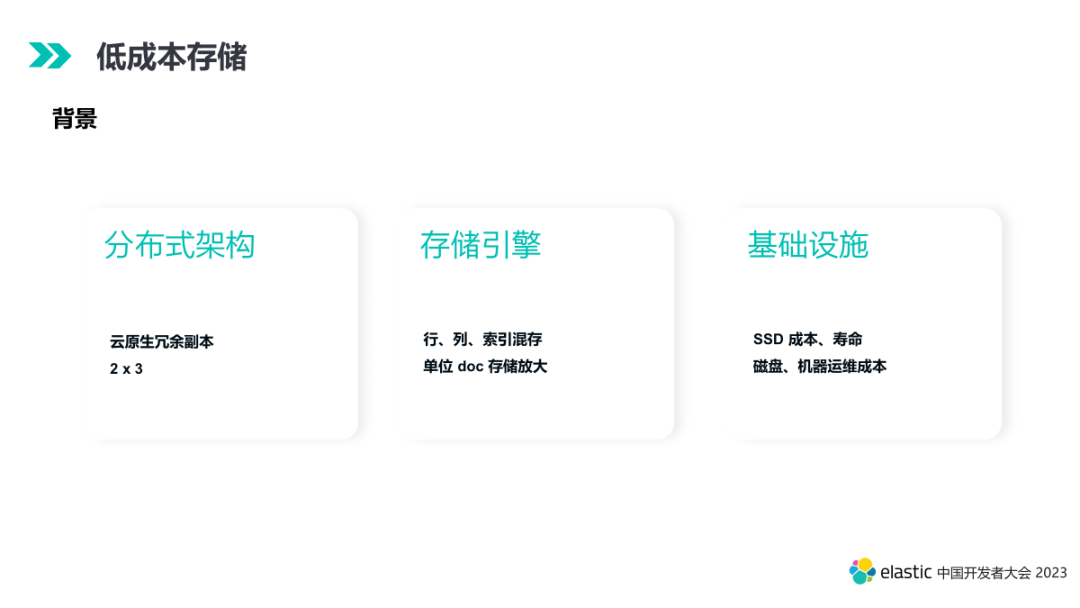 从上面几个维度的成本影响面来看,我们的优化重点一方面是降低单位文档的存储成本,另一方面是降低冗余副本、存储介质的成本。