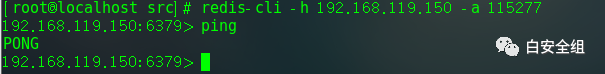 redis-cli -h 目标IP -a 密码最后我们模拟免密登录漏洞的操作