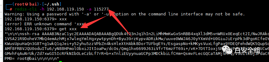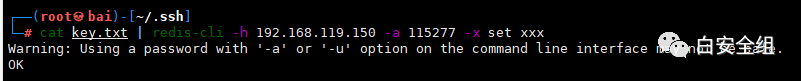 cat key.txt | redis-cli -h 192.168.119.150 -a 115277 -x set xxx然后我们登录进去