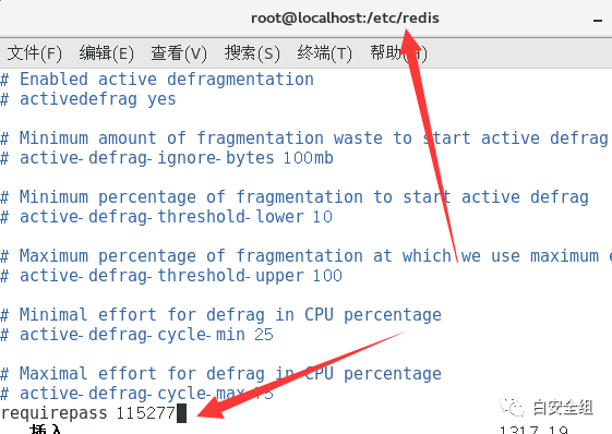 requirepass 【密码】vim中输入G到最后一行