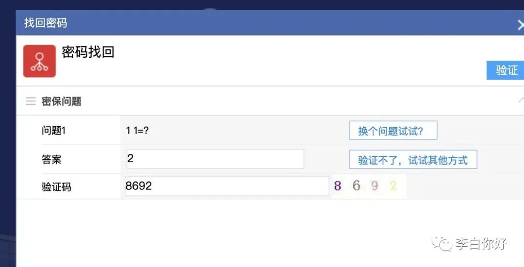 下面是内网的方面,打内网第一步就是应该先找到存活IP段,办公网我们可能是访问不到的,但是业务内网可能是通的,本身还想拿工具探测一波存活IP的,后想到由于之前进到了学校官网的后台,后台主页有显示服务器的IP为:172.16.XX.XX 是内网IP,于是直接进行一波信息收集Shiro不存在反序列化,正方教务系统没有0day,其余还有两个huawei的AP并没有什么利用价值。这个时候把目光放在了开票服务器和范围OA,简单看了下发票服务器有个弱口令进到后台:本来还想跑一下注入呢,结果流量进行了加密,且不存在st2漏洞,有一些简单的信息泄露,没什么利用价值,点到为止。此时把重点转移到泛微OA上,因为之前信息搜集到OA的系统管理员名称为sysadmin,然后想到系统有找回密码的功能,尝试看看能不能捡到漏,结果确实把我整无语了:最终我并没有修改密码进后台,而是准备用一波信息搜集的思路尝试打进去,说下思路:像这种学校的OA一般登录用户名要么是教职工的工号要么就是教职工的姓名(全拼短拼),密码的策略是Hh+身份证后6位(信息收集来的),但是教师的身份证号肯定不能进行批量的获取,但是我们可以通过社工库进行获取,在进行密码的爆破成功率会高一点。此刻问题就来了,用户名怎么获取,目前可以猜测一波,比如老师姓名叫做:张三丰,那么用户名可能为zhangsanfeng或者是zhangsf,于是以我们导员为例进行测试,如图:上图为全拼,下图为简拼,用户名策略已经知道,准备爆破密码,信息搜集了一波身份证进行爆破,结果发现密码不正确,这就很难受了,当时在这里卡了很长时间不知道下一步怎么做,后来一想学校给我们弄了教育邮箱,想着能不能登录到教育邮箱查看通讯录,上面可能会有全校老师的姓名(当时没有截图)用这些用户进行爆破,爆破下来发现一个没成功,看样子像是没有弱口令,于是去爆破密保问题,看看有没有比较简单的密保问题,长度354的代表设置了密保问题,于是进行一个个的查看密保问题是什么其中有一个问题是手机号,这一想之前信息泄漏就有手机号于是刚好可以找到手机号0x06 结束语