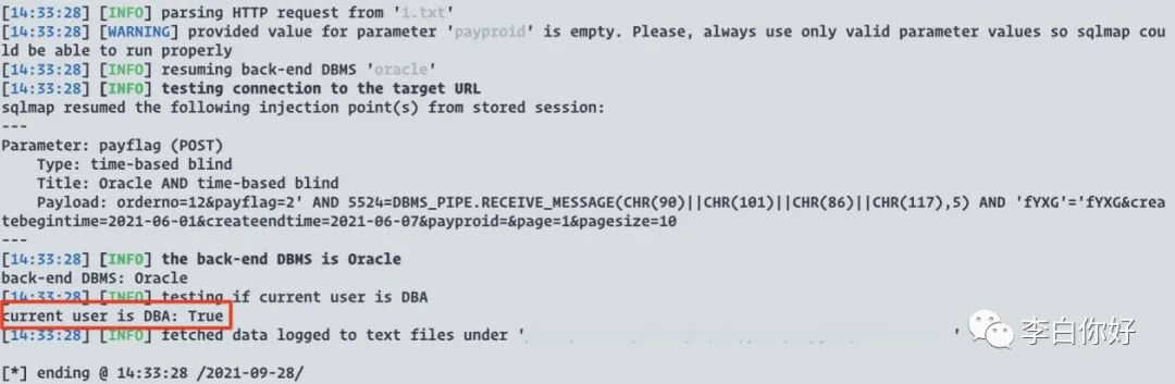 OA系统(泛微OA),教务系统地址,信息管理QQ群,信息部邮箱,电话,姓名,学生姓名学号,密码规则。后针对官网做了简单的测试,发现编辑器为kindeditor,看了看版本无法利用。后又针对缴费系统做了一波测试,发现存在SQL注入,如图:虽然是DBA权限但由于是Oracle数据库且是缴费系统拿不了shell,于是验证了一下漏洞就没再继续深入。0x02 内鬼潜入