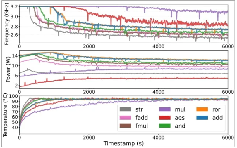 研究人员发现主流处理器都在努力实现功耗需求和高执行速率的散热限制的平衡。这会导致指向特定指令或操作的不同的行为模式。而这些行为模式可以通过软件利用内部传感器度量来实现。