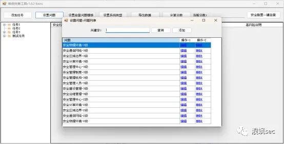 点击设置问题会出现设置问题弹窗,这里的问题是为了设置自查模板的测评项,比如三级有十项,二级有五项,添加完后可以做编辑删除操作。