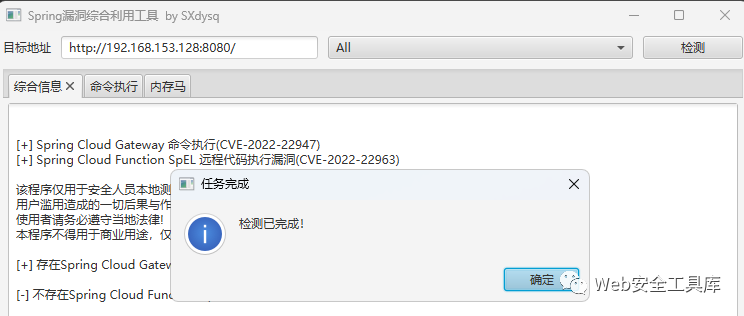 Spring Cloud Gateway存在远程代码执行漏洞,该漏洞是发生在Spring Cloud Gateway应用程序的Actuator端点,其在启用、公开和不安全的情 况下容易受到代码注入的攻击。攻击者可利用该漏洞通过恶意创建允许在公众号web安全工具库远程主机上执行任意远程请求。漏洞影响: