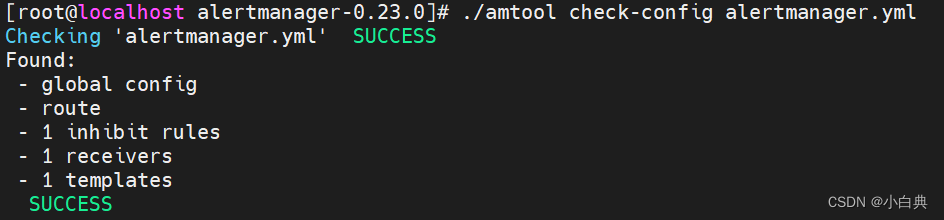 在alertmanager-0.23.0目录,执行命令./amtool check-config alertmanager.yml检查配置是否正确。