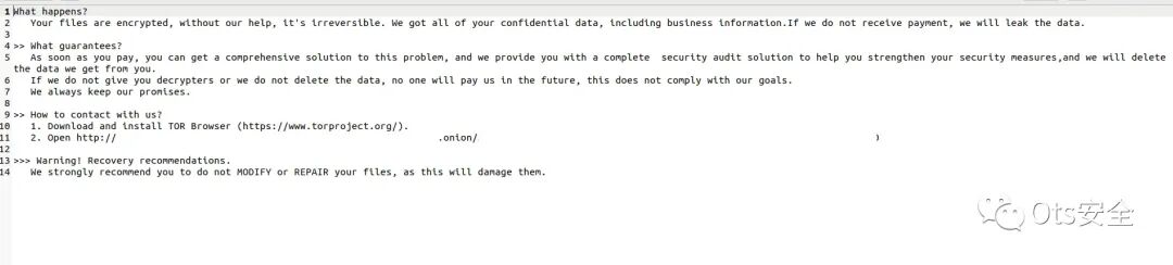 图 12 - Cyclops 勒索软件 (Linux) 加密后的报告