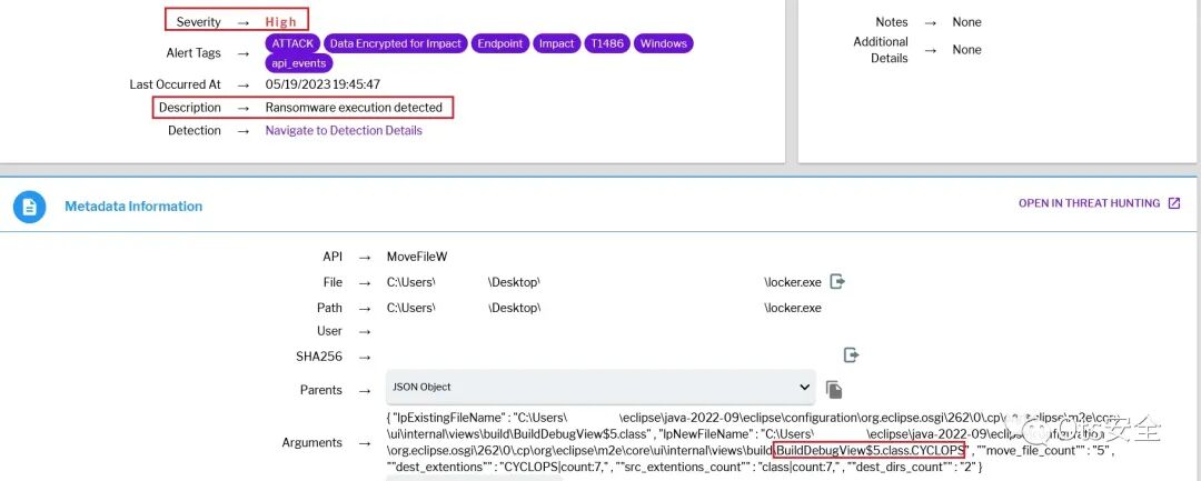 不容忽视的是,Uptycs 产品还配备了针对 Windows 勒索软件的专门警报检测。