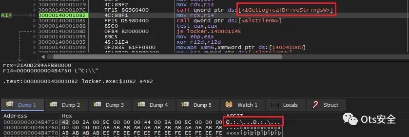 有效负载使用 GetLogicalDriveStrings API 来检索系统逻辑驱动器信息。