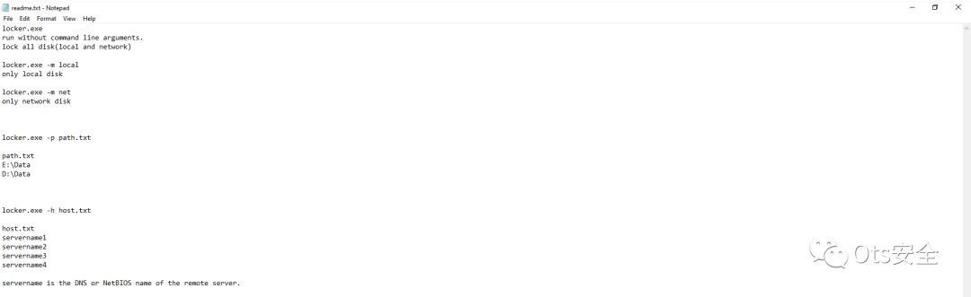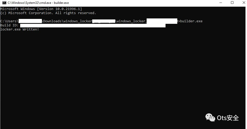 提取从面板获得的下载存档文件后,Uptycs 发现了构建器二进制文件和readme.txt文件的存在。此外,攻击者还私下共享了一个构建器 ID,用于创建名为locker.exe 的勒索负载。