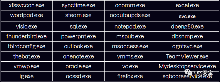 载荷扫描并识别进程在受害者的机器上运行,立即终止任何可能阻碍加密它打算劫持的目标文件的进程。