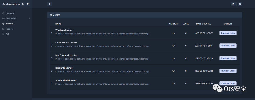 威胁开发人员提供了一个单独的面板,以方便为上述三个操作系统分发其勒索软件。