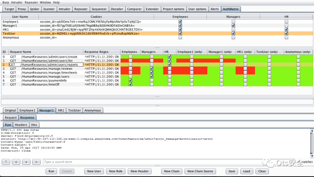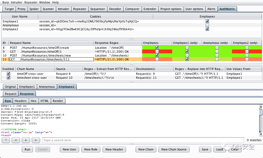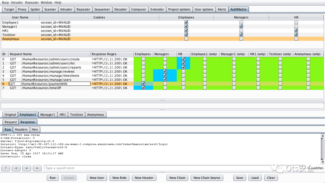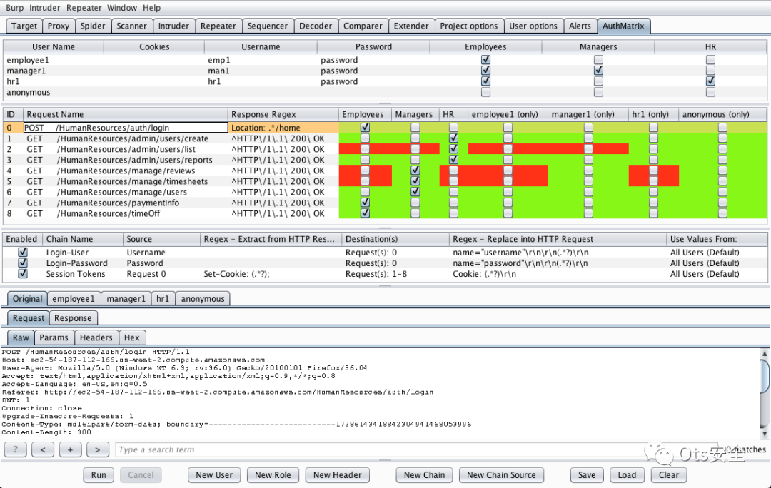 示例 AuthMatrix 配置