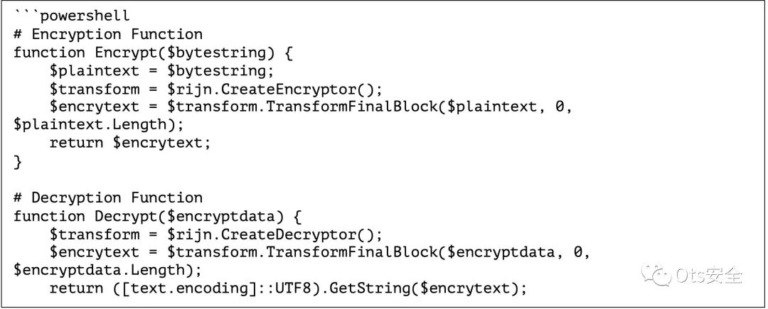 PowerDrop 使用 PowerShell 提供的接口“CreatEncryptor”和“TransformFinalBlock”来加密和解密有效负载。