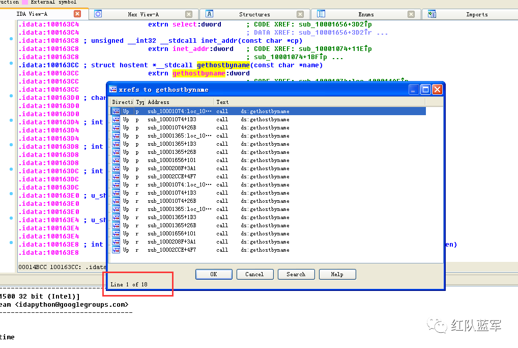 找p,然后去除重复得到5个函数调用了gethostbyname