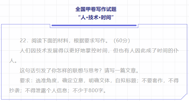 当然,这一轮还是有个没有押中的,就是针对西南省份,写作门槛最低的全国甲卷,内容是“人 技术 时间”。