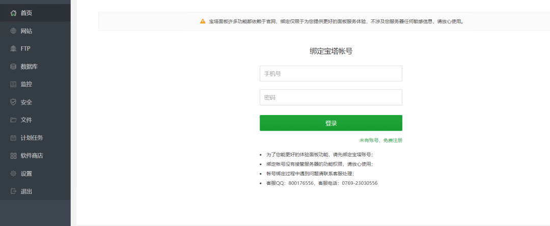 从7.4.5版本开始,某塔安装后首页强制绑定手机号码,虽然没有关闭按钮,但其实只是一个弹窗,并且只在首页提示(不排除之后官方改成其他页面也弹窗),不想绑定的用户可以直接修改面板首页文件即可关闭!
