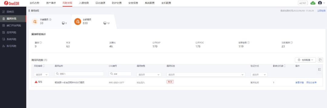 2023.01 微步在线主机威胁检测与响应平台OneEDR支持检测