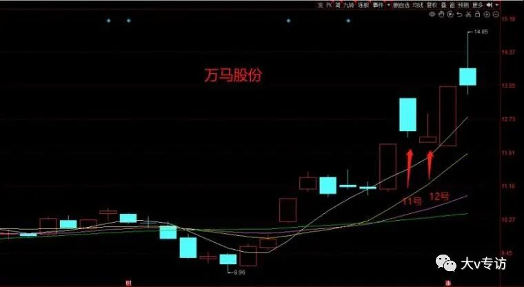 在板块赚钱效应很强的时候,很难去识别真龙还是假龙,有些可能只是沾了光,乌鸦也能变成凤凰。最关键的是后面两天,板块弱化的时候谁最抗跌?11号和12号,板块震荡一天,又弱化一天。尤其是12号,这天热点的走势就非常关键了,要是太弱,就会直接断送板块的赚钱效应。那天热点只是走了一个小阴线,前一天涨停的英可瑞表现的就很不错,连续两天收阳线,维持在5日线上方,而万马股份和香山股份就很有意思了,万马高开低走收了一根大阴线,而香山冲了2板,从走势上来说香山是最强的,连续两个涨停,但是我们要考虑当下的市场结构,现在还没过渡到连板格局,它的二连板不是提前断送自己的前程吗,