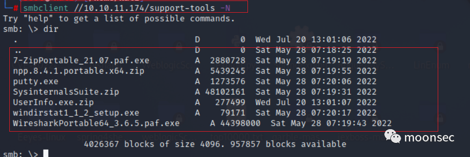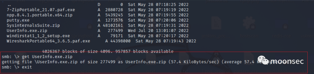 使用“dir”命令,我们可以获得存储在“support-tools”上的文件的目录列表。然后下载所有文件,去在本地进行分析。