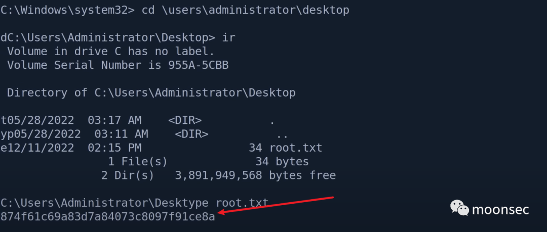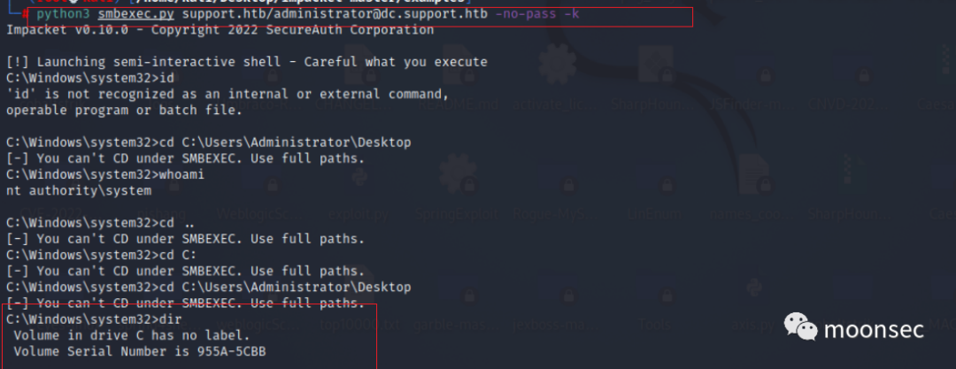 使用impacket工具获取管理员权限,我们成功获取到管理员权限。