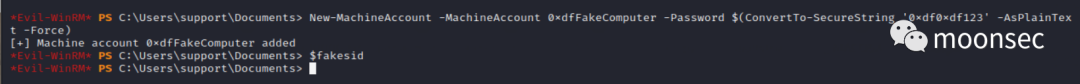 使用 PowermadNew-MachineAccount来创建一台假计算机: