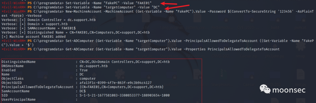 New-MachineAccount -MachineAccount (Get-Variable -Name "FakePC").Value -Password $(ConvertTo-SecureString '123456' -AsPlainText -Force) -Verbose