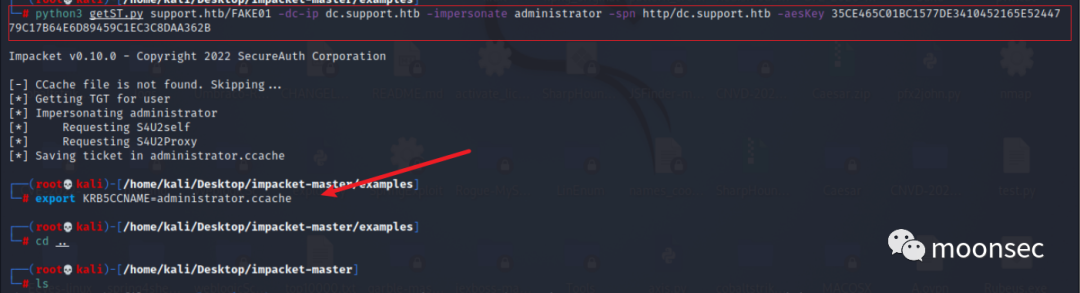 我们已经利用了这个安全漏洞,并赋予计算机对象“FAKE01”冒充另一台计算机。因此,我们向“dc.support.htb”上的资源请求一个新的 Kerberos Ticket-Granting-Ticket(TGT)。