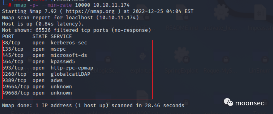 使用nmap进行端口探测,发现存在88、135等多个端口。