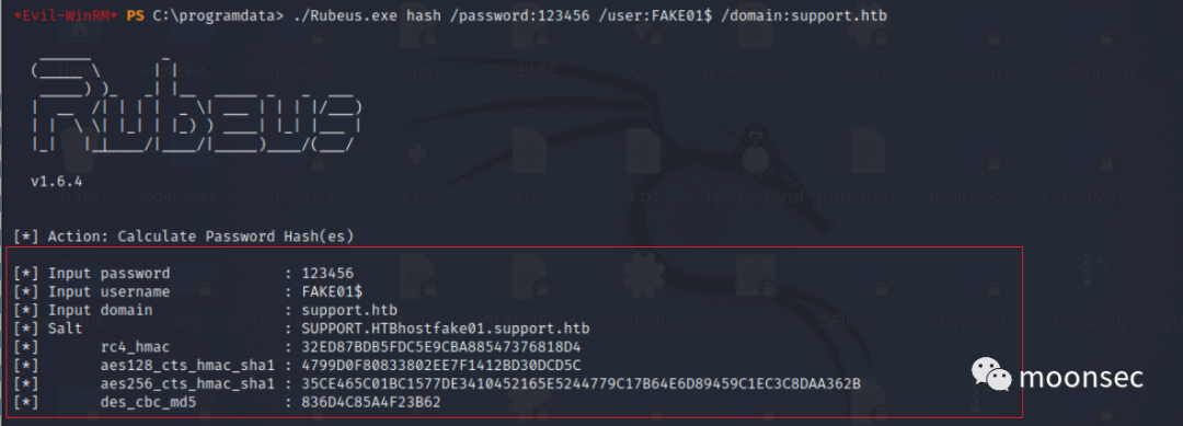 ./r.exe hash /password:123456 /user:FAKE01$ /domain:support.htb