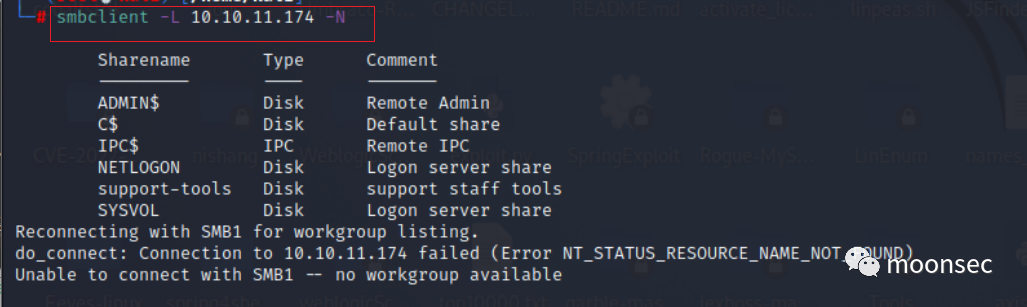 SMB 文件共享是重要的信息收集方式,然后我们去枚举SMB 文件共享。