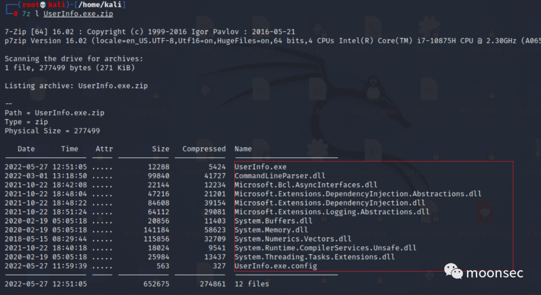 “UserInfo.exe.zip”。检查文件的哈希值,发现这个“UserInfo.exe.zip”文件包含一个“UserInfo.exe”。
