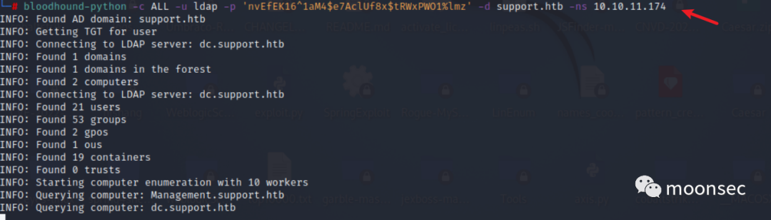 下面这些就是使用Bloodhound.py收集的一些信息。