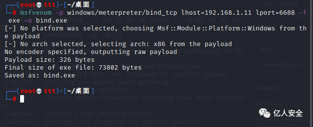 先在kali上生成msf木马 然后开一个http服务 将马放在服务上 供目标远程下载 因为目标出网