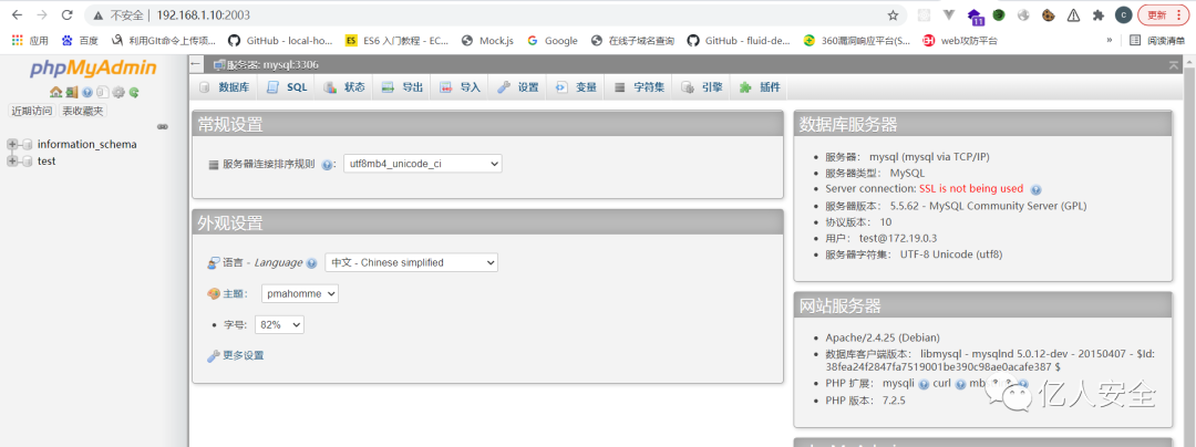 利用百度搜索发现,phpmyadmin4.8.1后台存在漏洞CVE-2018-12613,利用Poc验证本服务器是否存在