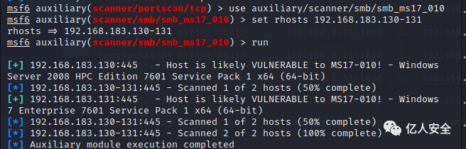 set ports 135,445,80,443,1433,3306,53,8080,8888,7001 # 将常用端口添加并扫描set rhosts 192.168.183.130-131 #探测两台服务器