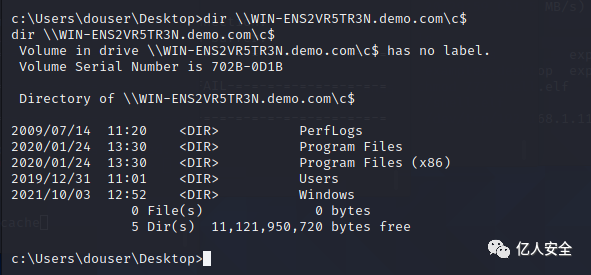 然后dir \WIN-ENS2VR5TR3N.demo.com\c$