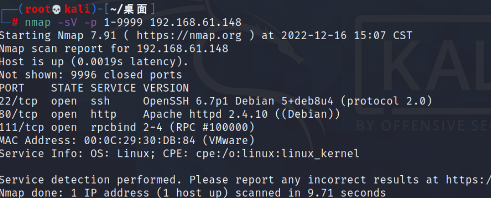 nmap扫描端口开放情况
