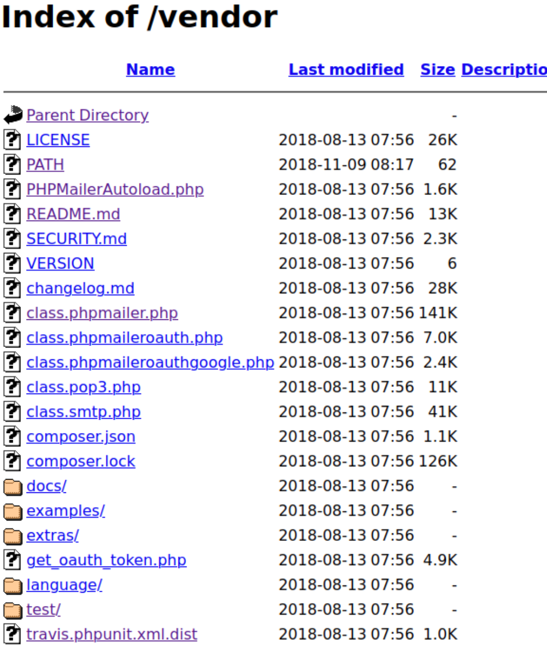 翻看文件README.md文件得知为phpmailer,百度phpmailer知道是一个php发送邮件的程序,且版本小于5.2.18存在漏洞远程命令执行漏洞,查看当前version版本为5.2.16
