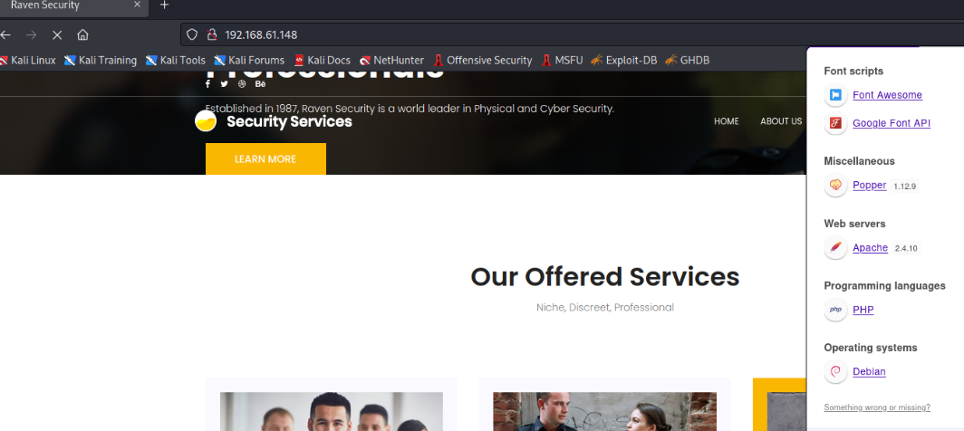 发现开放了22,80,111端口,操作系统为Linux 访问靶机80端口 利用插件查看中间件和指纹版本(语言为PHP)