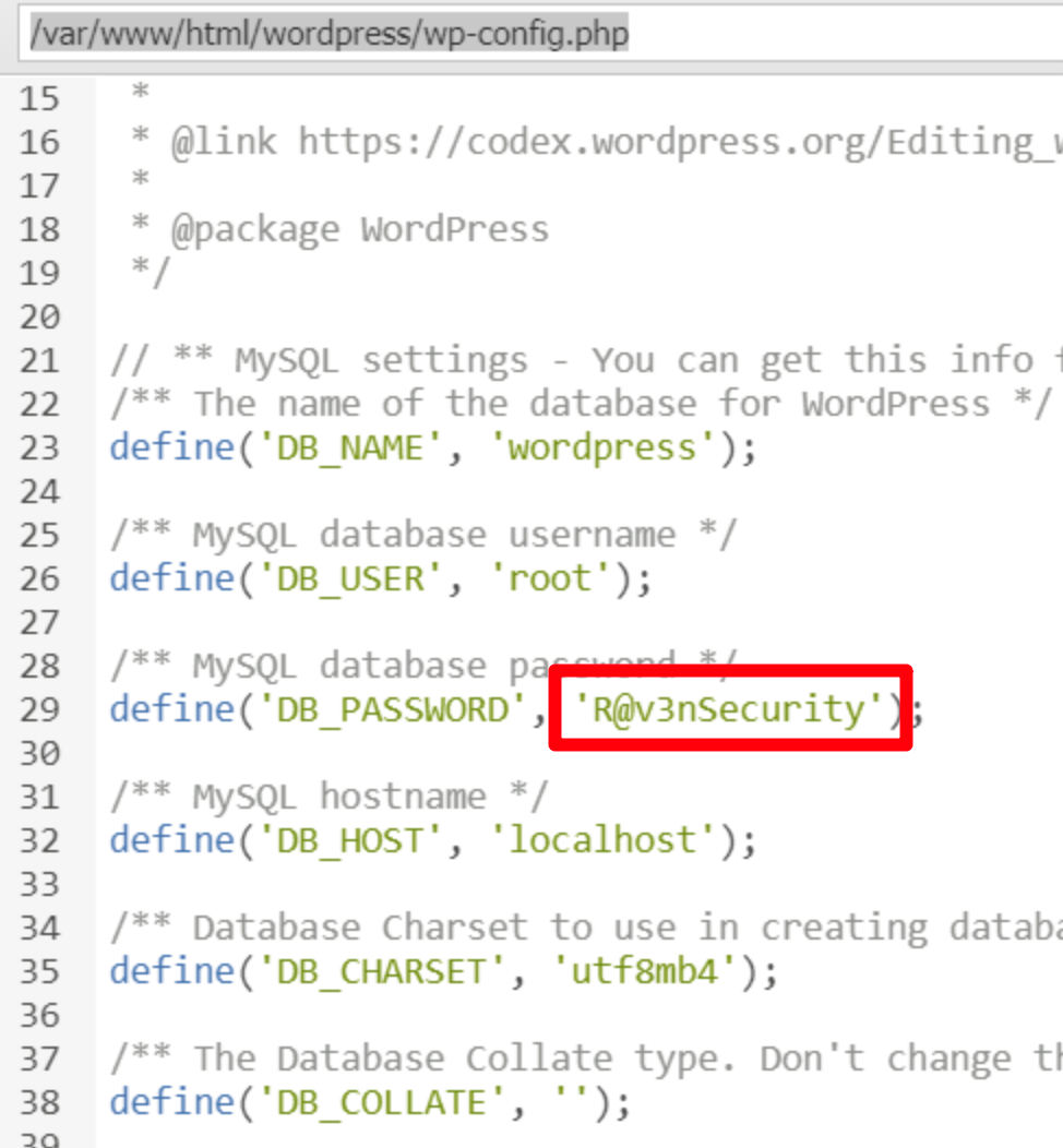 查找数据库配置文件(/var/www/html/wordpress/wp-config.php)
