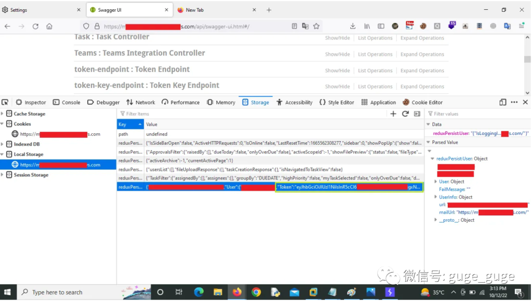 2、通过在页面中点击右键,选择Inspect > Storage > LocalStorage,在LocalStorage中搜索授权Token