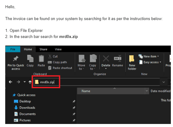 用户执行这种行为后,它会自动启动包含文件压缩模板的.zip 域名,创建一个逼真的正版外观。