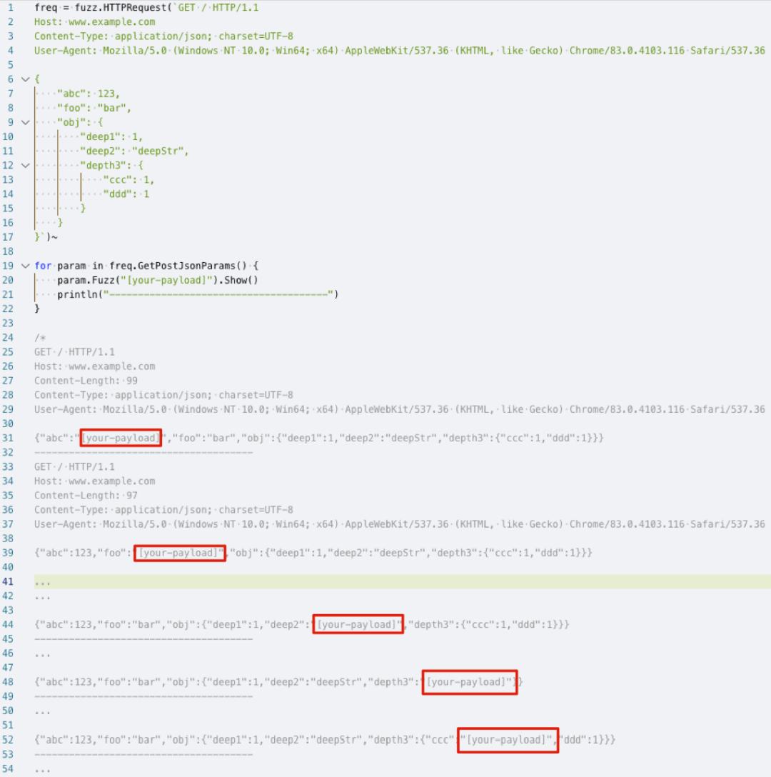 熟悉 Yaklang Fuzz 模块的同学对上述的结果其实并不陌生,实际上这个问题已经得到了很好的解决。但是往往渗透测试中遇到的 JSON 可并不是这么简单。